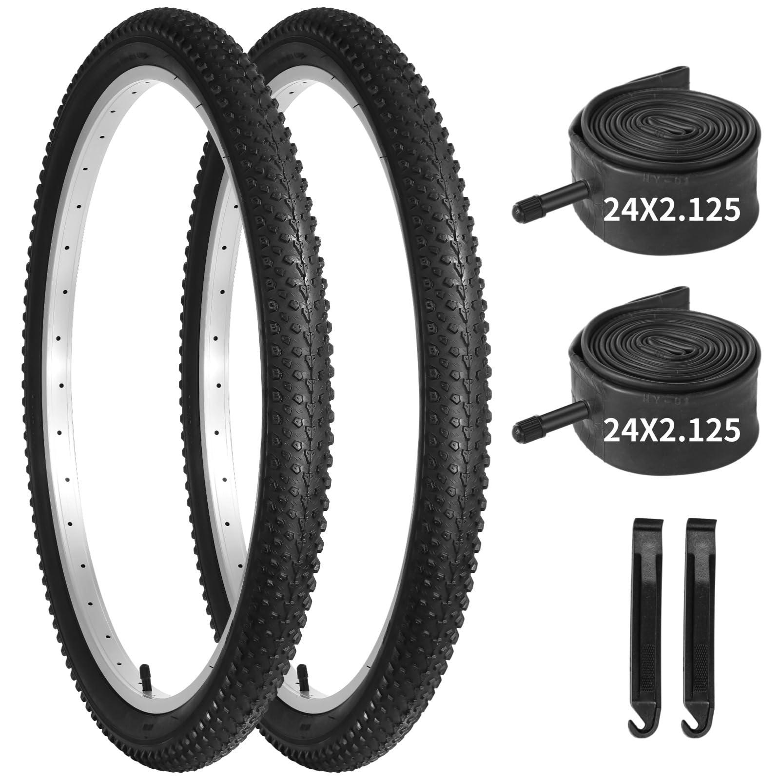 - Upgrade Your Bike TiresYou will receive 2 bike tires measuring 24" x2.215", 2 inner tubes, and 2 tire levers. Our inner tube fits 1.75"-2.215" tire width, with a 1.2" (30mm) A/V valve. Our bike tire boasts 27 TPI (threads per inch) and a maximum inflation pressure of 40 PSI (280 KPa, 2.8 bar).