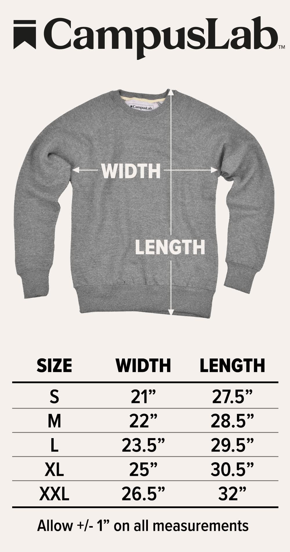 - "THE SWEATSHIRT" by CAMPUS LAB: SLIM FIT - SIZE UP! Our Sweatshirts are a slim fit cut. For a more relaxed fit, or if you are in between sizes, choose a size up. Crafted from timeless tri-blend, this cozy college essential is destined to become a favorite. Featuring ribbed cuffs and waistband, our long sleeve tagless crewneck sweatshirt was constructed for comfort. Campus Lab Your Legacy, Engineered.