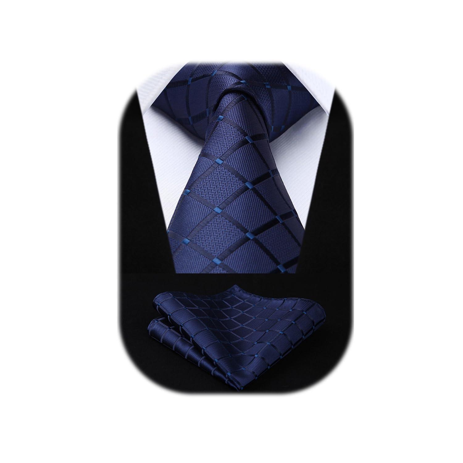 - Tie Set for Men: A navy blue necktie with pocket square set, elevate your style with this sophisticated checkered tie set; The subtle criss cross plaid pattern adds a touch of elegance; Stand out from the crowd with this versatile accessory that strikes the balance between refinement and versatility