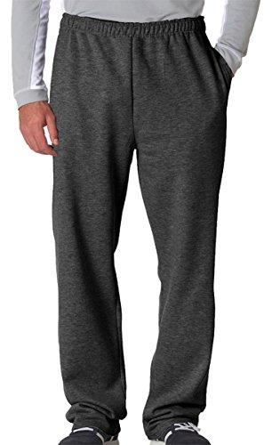 50% cotton, 50% polyester; Oxford is 49% cotton; 51% polyester; high-stitch density for a smooth printing canvas; differential rise for a better fit; virtually pill-free; covered elastic waistband with inside drawcord; side-entry jersey-lined pockets; double-needle hemmed open-bottom