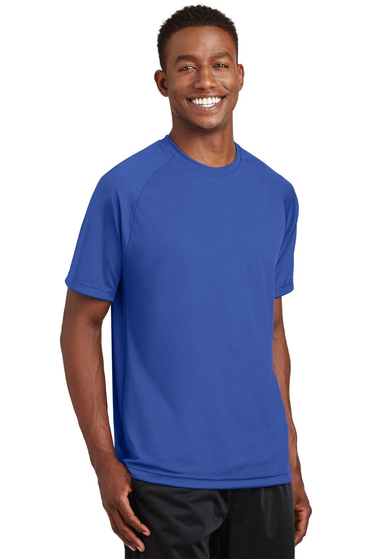 With a loose fitting, athletic cut for maximum movement, this essential sports piece expertly manages , it way from your body so you stay cooler and drier. With , this t-shirt also resists -. 3.8-ounce, 100% polyester Raglan sleeves Double-needle sleeves and hem Adult Sizes: XS-4XL