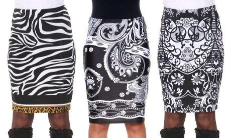 Victoria Pencil Skirt- Black & White Bandana Print - S, Black,White,Red