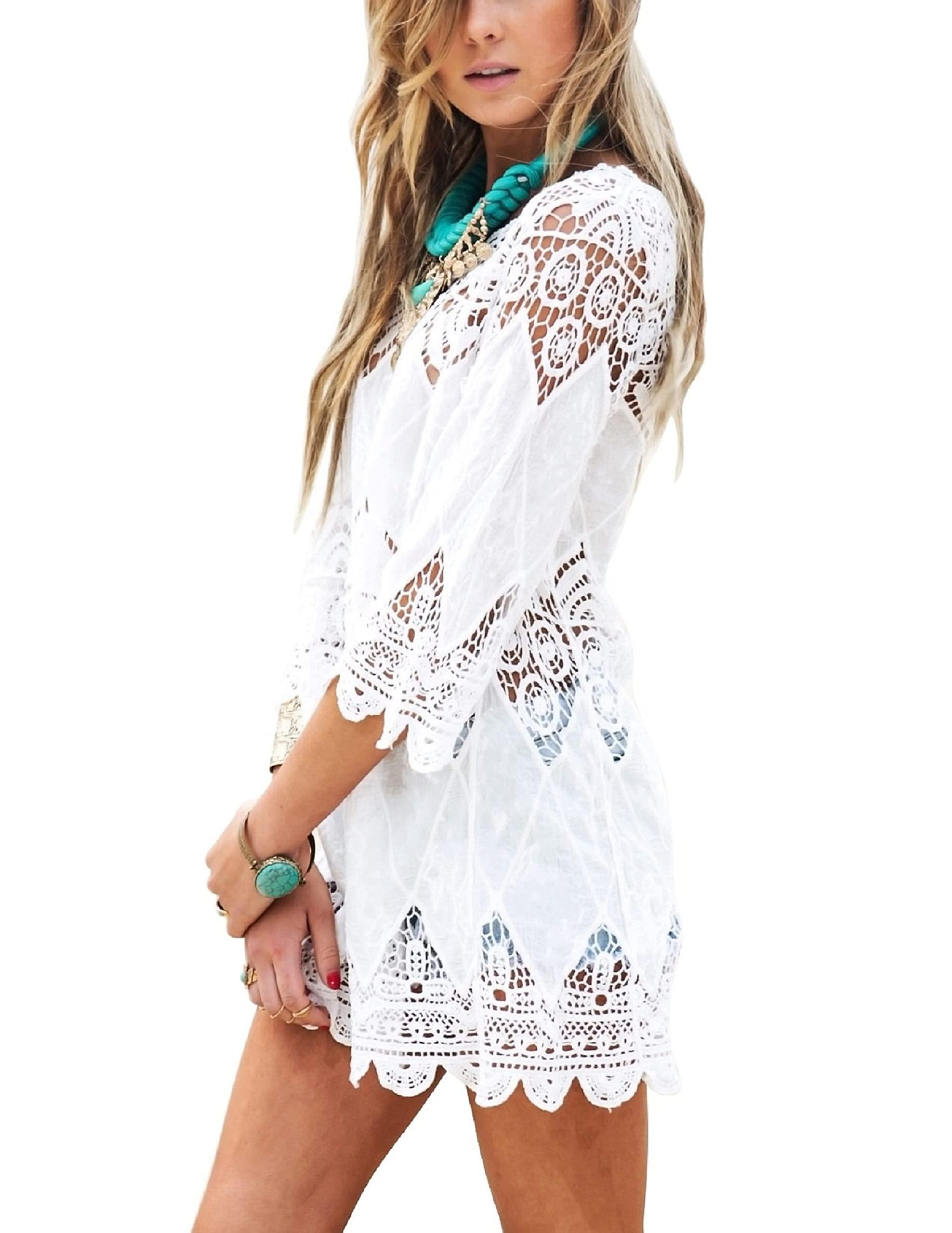 - Features: This bathing suit cover up is made of cotton and lace. The material is very soft and cool to wear in hot summer and looks very elegant and cute.