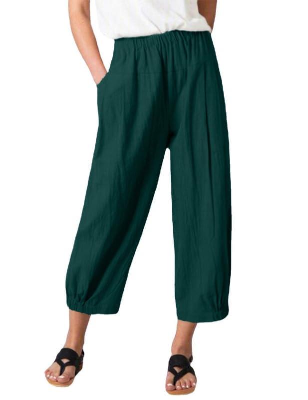 WROLEM Women\'s Capri Yoga Pants Loose Soft Workout Causal Lounge Pants Pockets Dark-Green Small