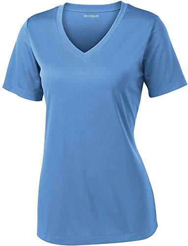 - The DRI_EQUIP Ladies V-Neck Shirt is Lightweight, roomy and highly breathable, these moisture-wicking, value-pricedworkout shirts for women feature PosiCharge technology to lock in color and prevent logos from fading. These moisture wicking shirts for women are also great yoga shirts.