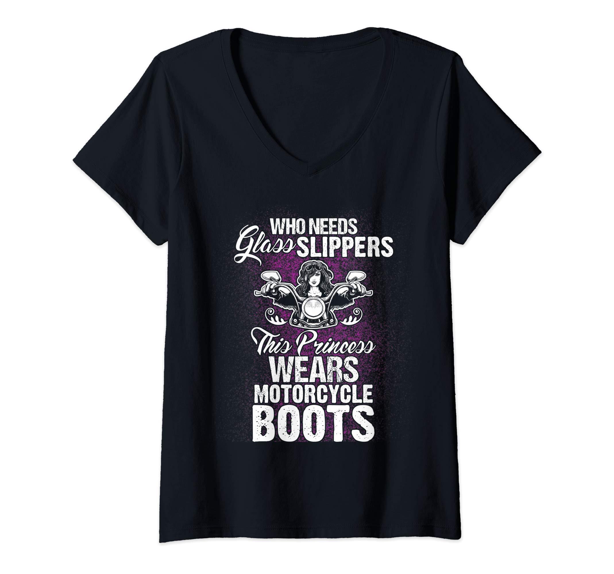 Womens Who Needs Glass Slippers Motorcycle Gift Women V-Neck T-Shirt